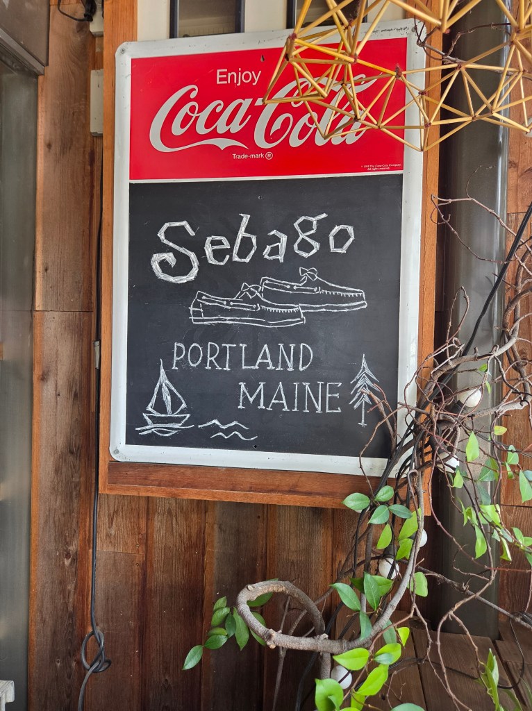 While walking through the city streets I noticed a sign in a store window mentioning Portland, Maine! As I was taking a picture of it a gentleman came by and started talking to us. He was the owner of the store. The sign was advertising Sebago shoes, that are made in Portland. The owner, Sho, told us he had been in Maine back in 1977 and that he also visited Nantuckett. Again, as has been the case with others, he seemed very pleased to have conversed with us.