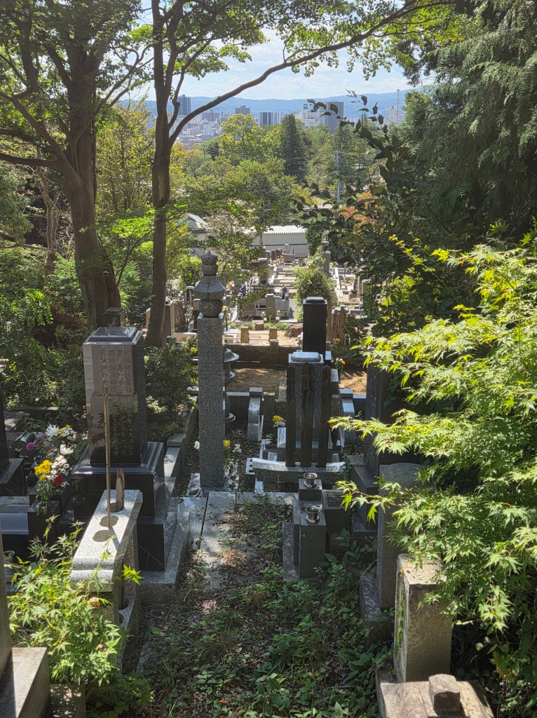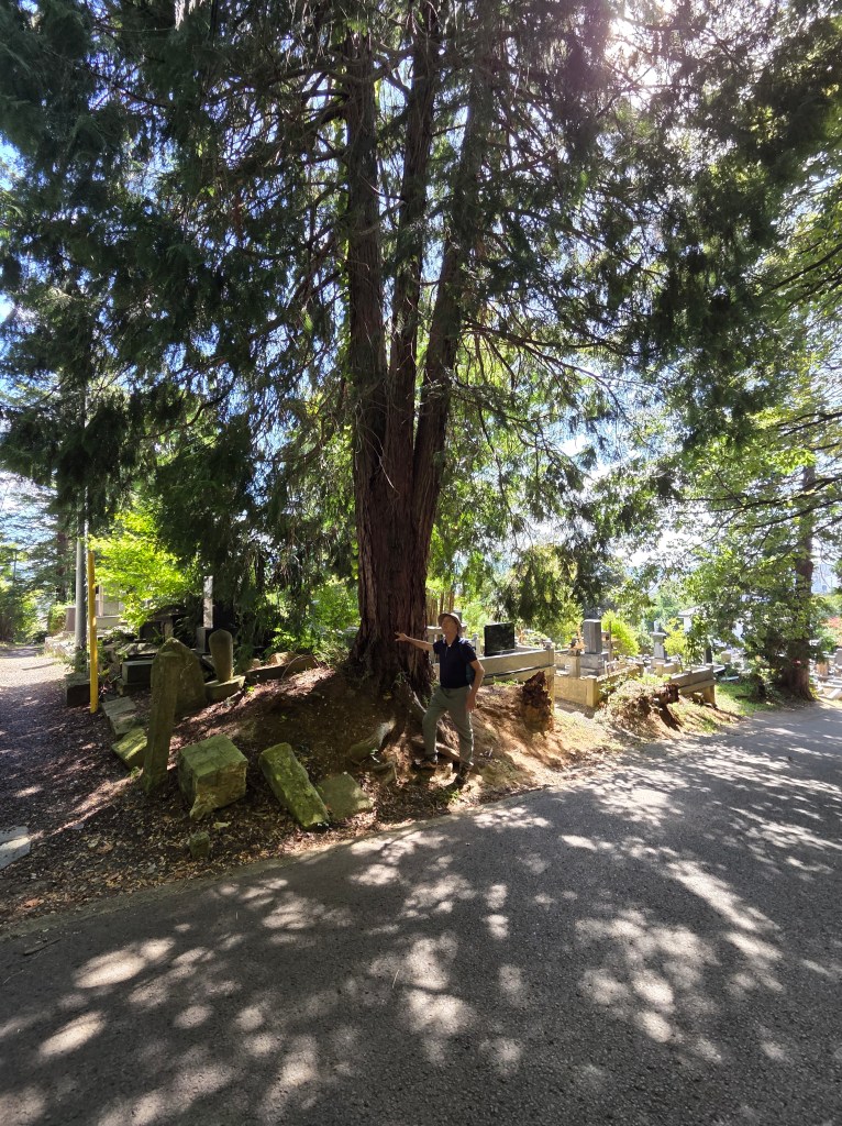 There was also a cemetery that covered an expansive area. The burial sites were quite elaborate, not just a single tombstone. The cemetery was also set in natural surroundings, with plenty of tree cover. One large tree we took note of was a Hinoki Cypress.