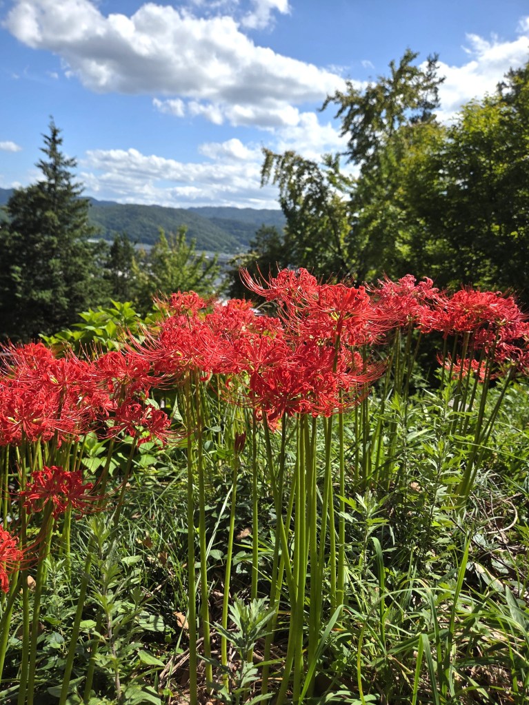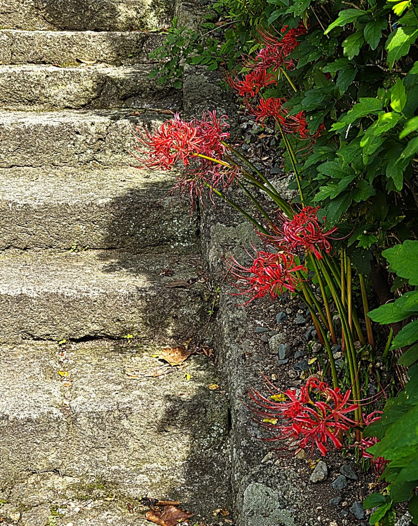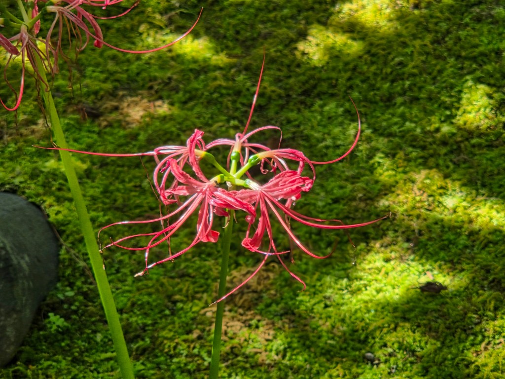Another “spider” that was also very impressive was the red spider lily. This is a flower in the amaryllis family that blooms in late summer or early fall. Its leaves don’t emerge till later in fall. There were quite a number of these very attractive flowers in bloom throughout our walk on Mt. Shinobu.