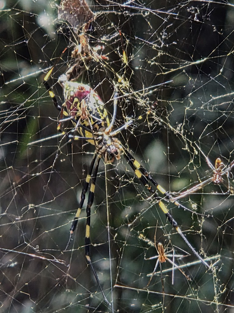 Another impressive natural world sighting was of Joro spiders. This is one of the orb weaver spiders and it constructs massive webs, of which we saw many. They are native here, but I learned that they have appeared in the US in the last couple of decades, mostly in the south but it is extending its range northward. It is a large spider that looks threatening, but is relatively harmless to humans.