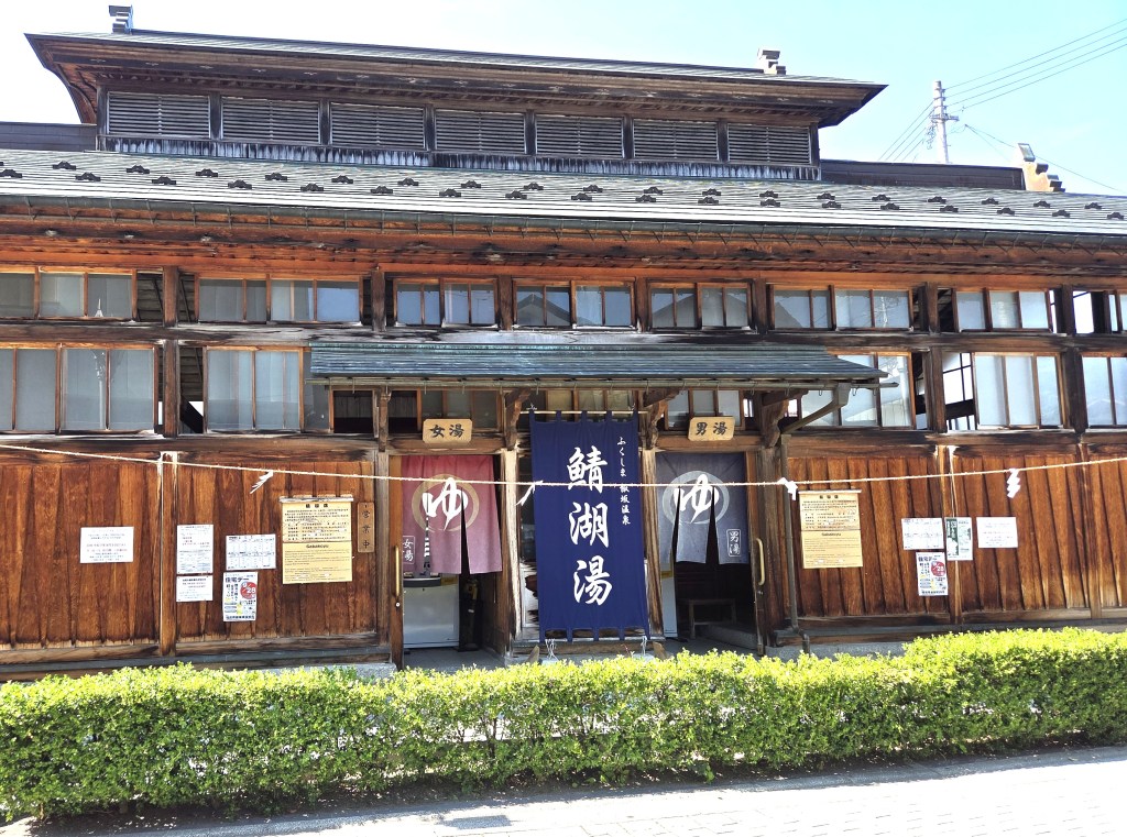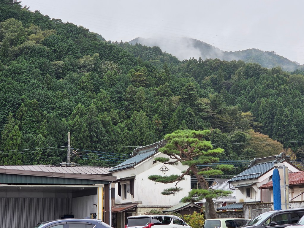 Akio, one of the people who attended my reading at Kazuaki’s the other day, wanted to meet with us, along with two of his friends, while we were out today. He and his friends were going to meet us for lunch. But when they called Kazuaki while we were driving, they had us meet them at Iwamuro Onsen, which has an over 300 year history!