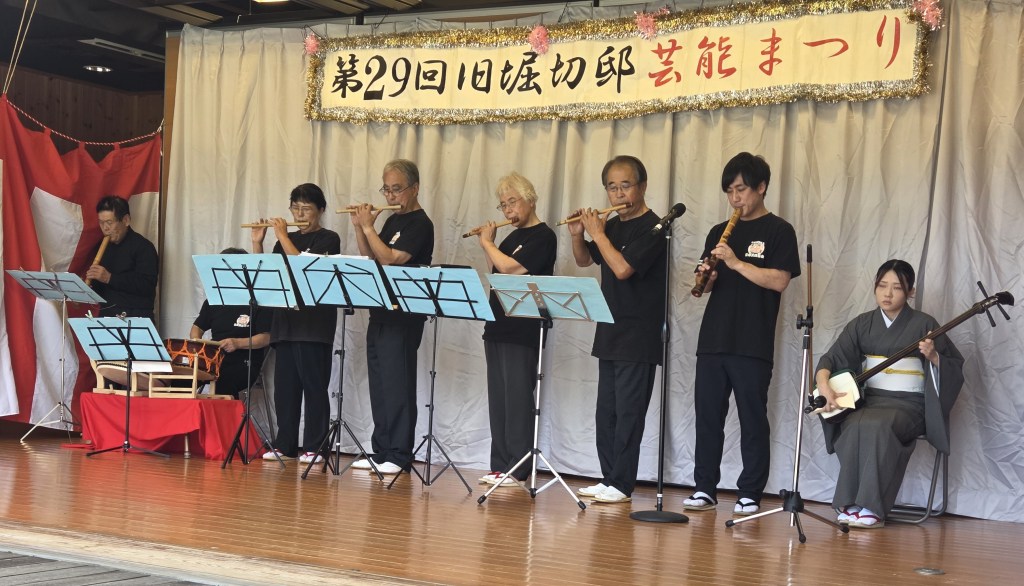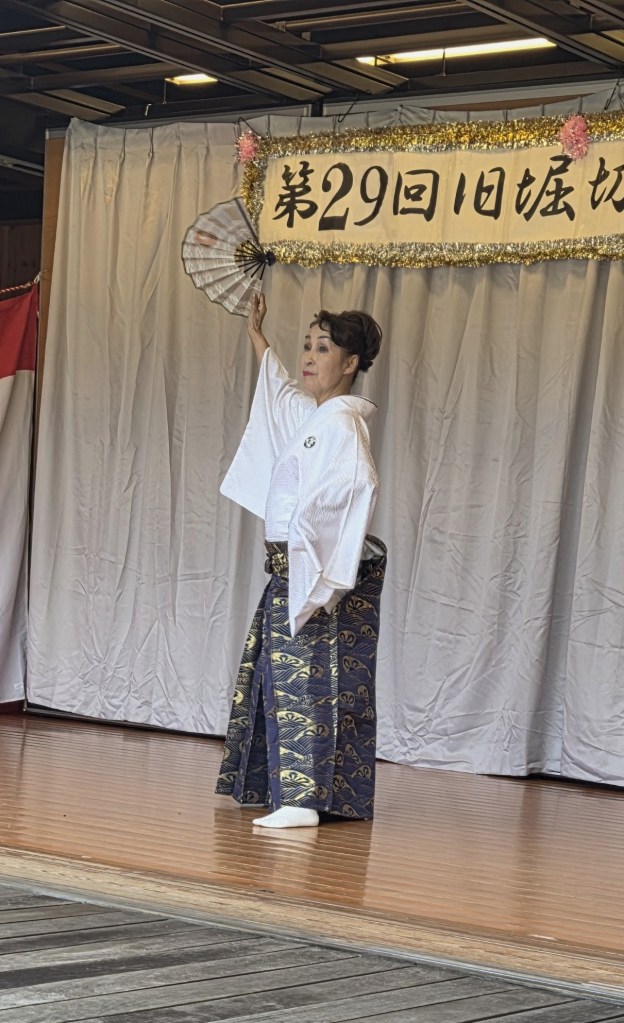 After leaving the onsen we started to walk through the small town. Just a few minutes into that walk Bart was commandeered away (with me following) by an older Japanese woman. She led him (us) into a compound that was the old estate of the Horikiri family. They were celebrating the Autumn Festival with amateur music, song and dance performances. I say commandeered because she was very authoritative in her talk (even though she only spoke Japanese) and she physically led Bart by the hand. There was no backing away politely!