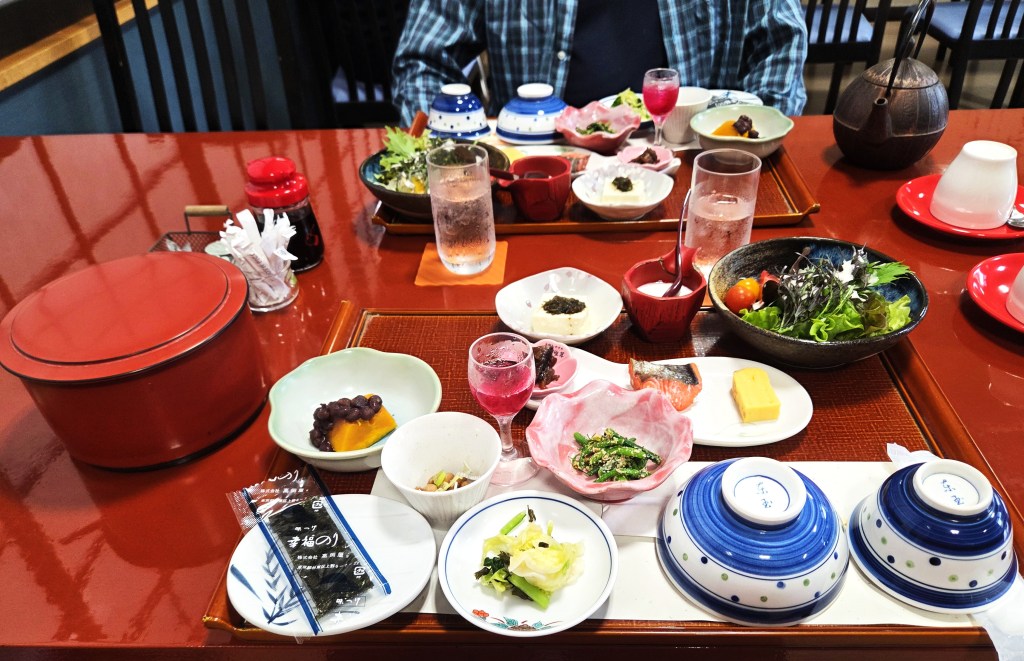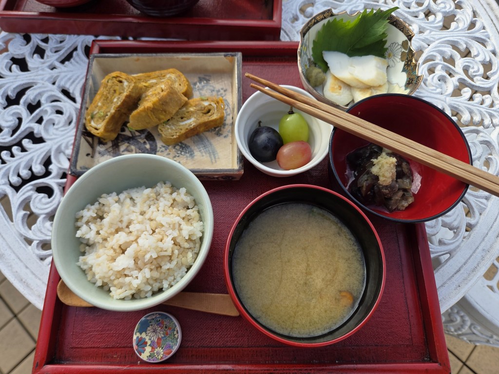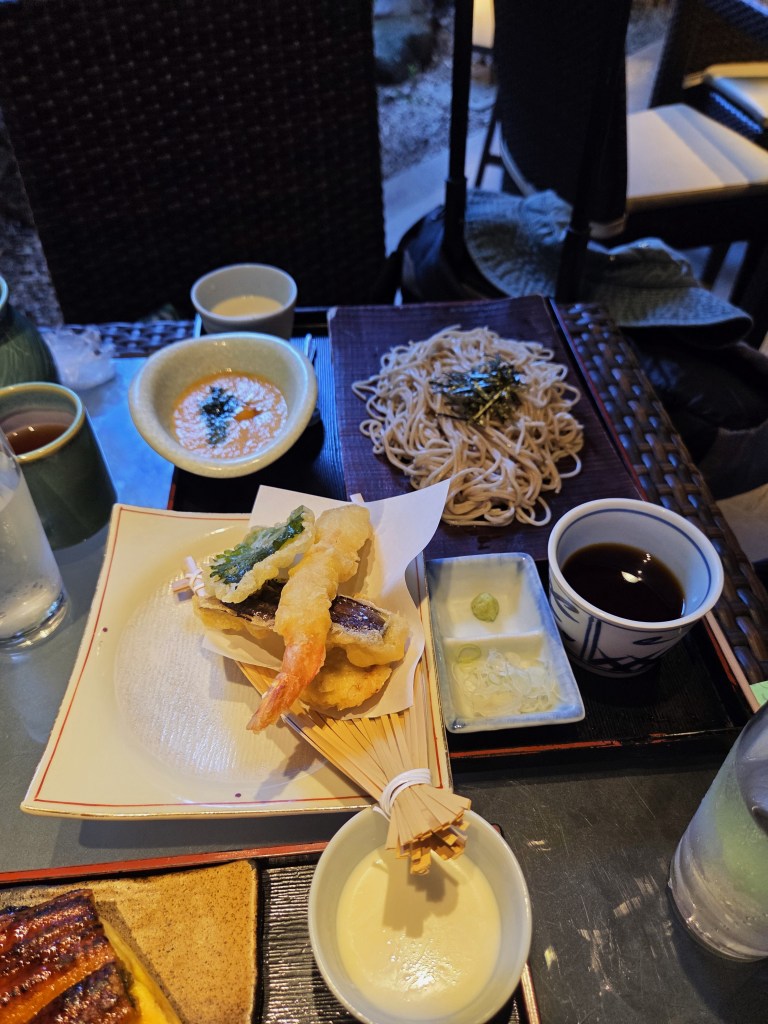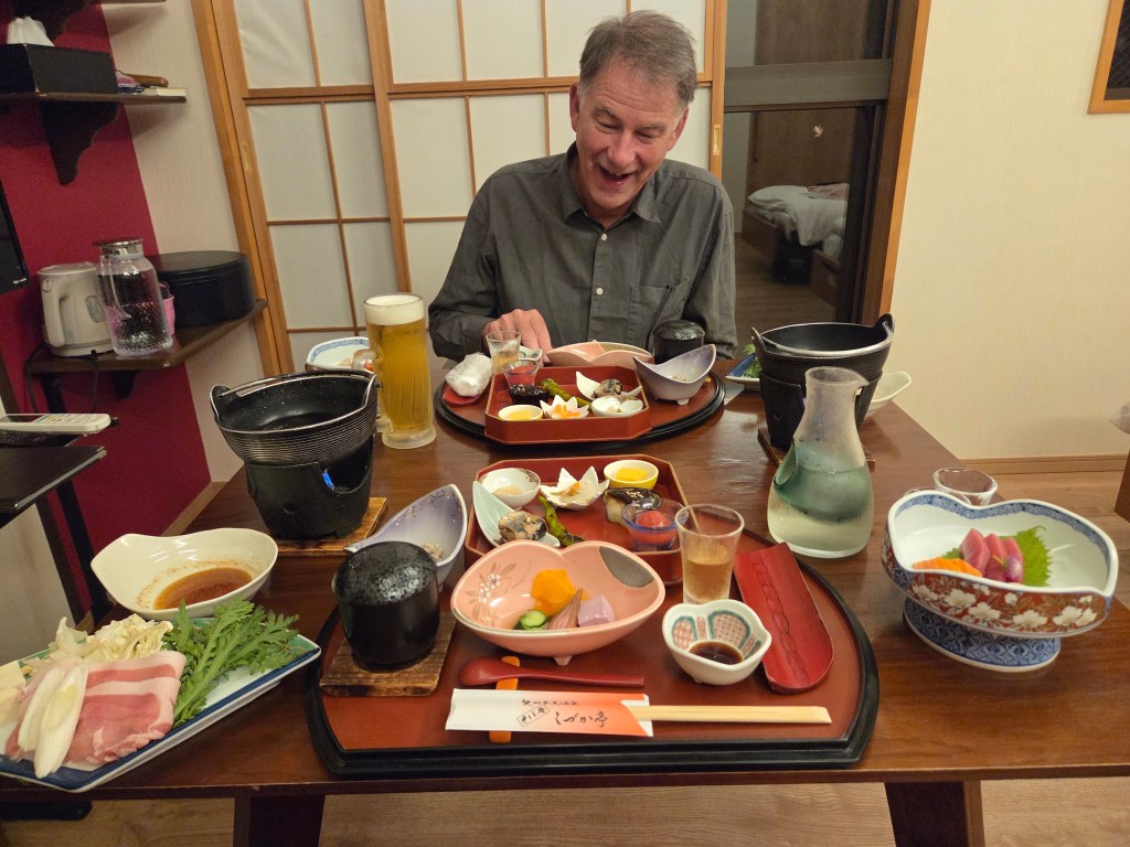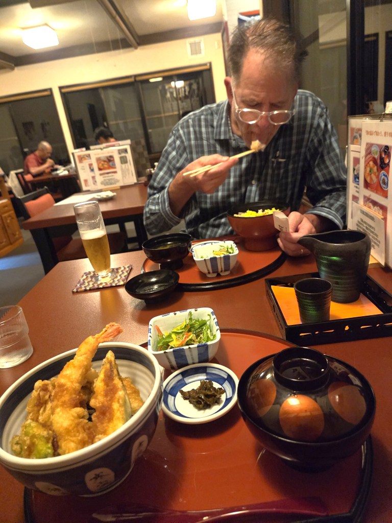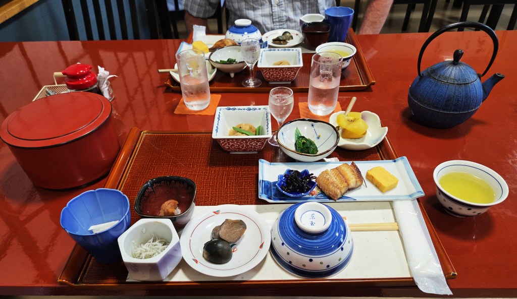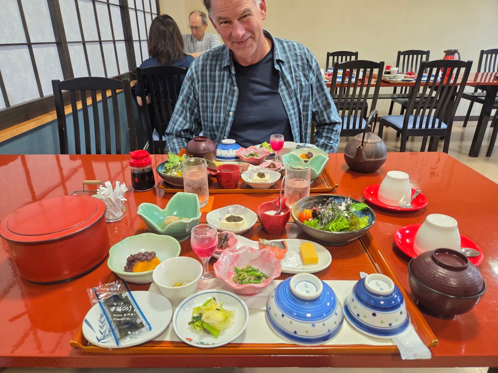 It was a wide open room that was bright and comfortable. We sat at a two person table with another couple at the table right next to us. Good conversation ensued and it revolved around Basho and haiku. The wife didn’t speak much English, but her husband did somewhat. But she did recite a haiku or two of Basho’s and helped Bart with pronunciation of some Japanese words. They seemed pleased to have met us and related with us.