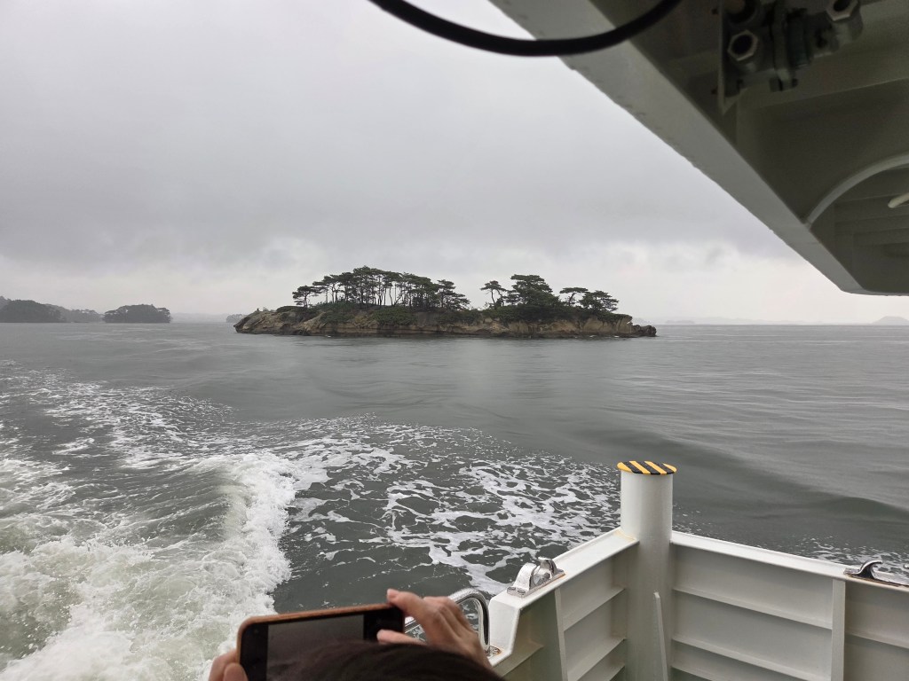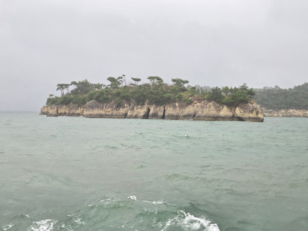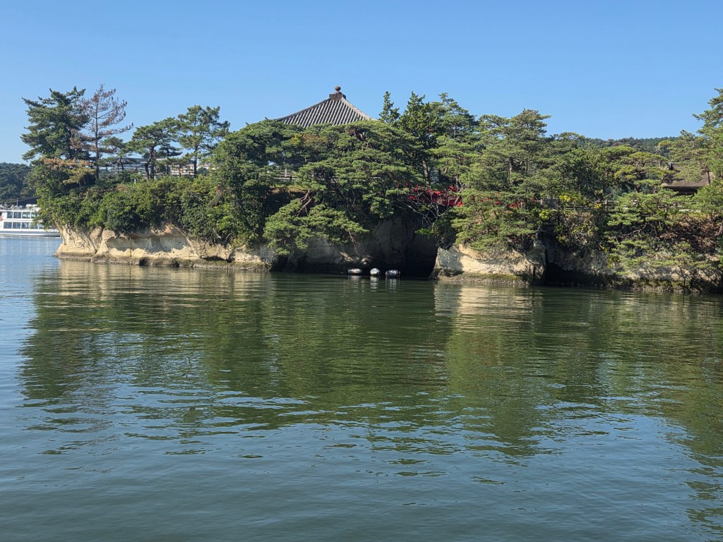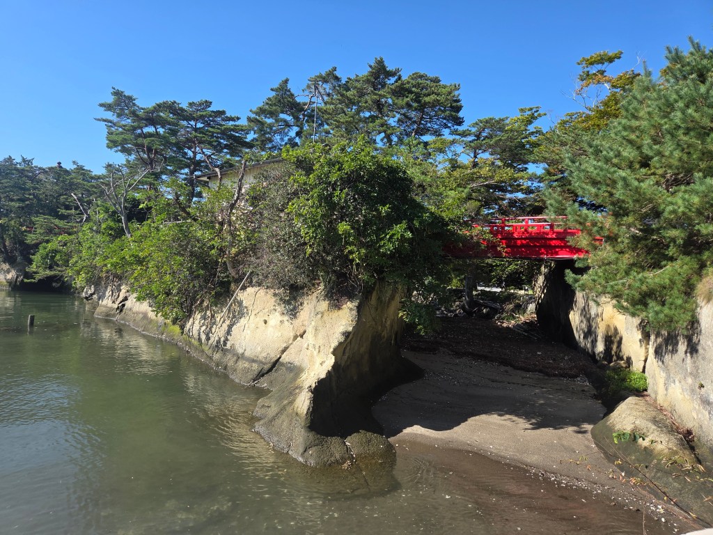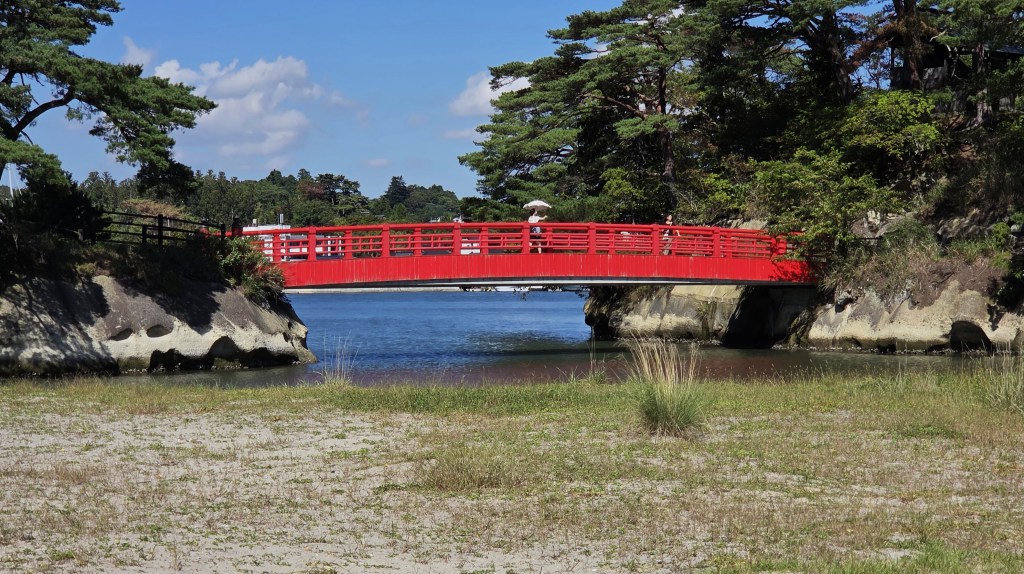 From there we walked over to Oshima Island, across another of the vermillion colored walking bridges. This is a sacred island that is the heart of Matsushima. The bridge to the island was destroyed in the 2011 tsunami, but rebuilt shortly after.