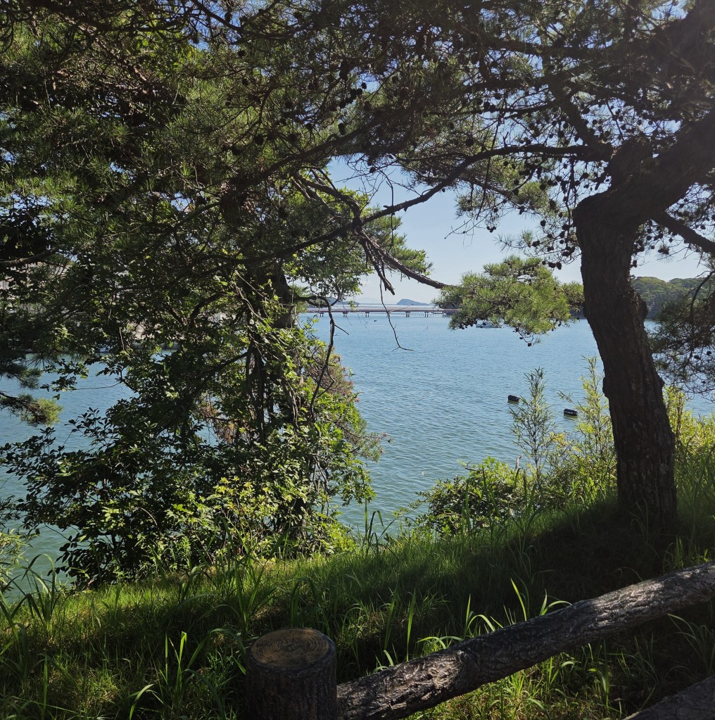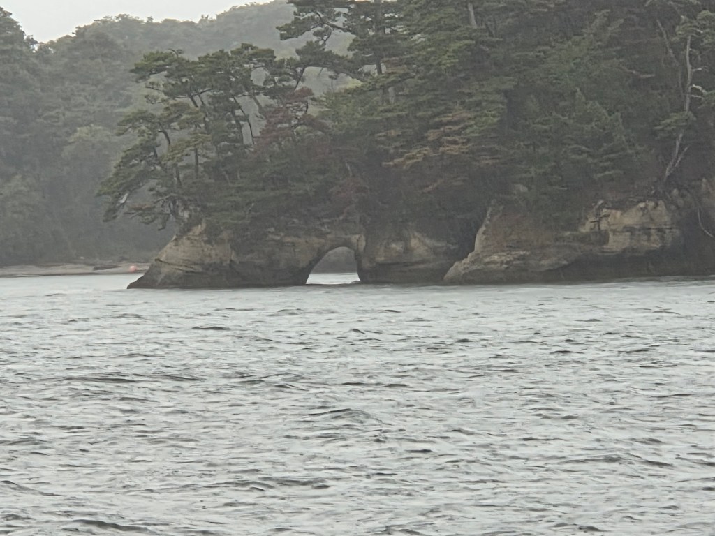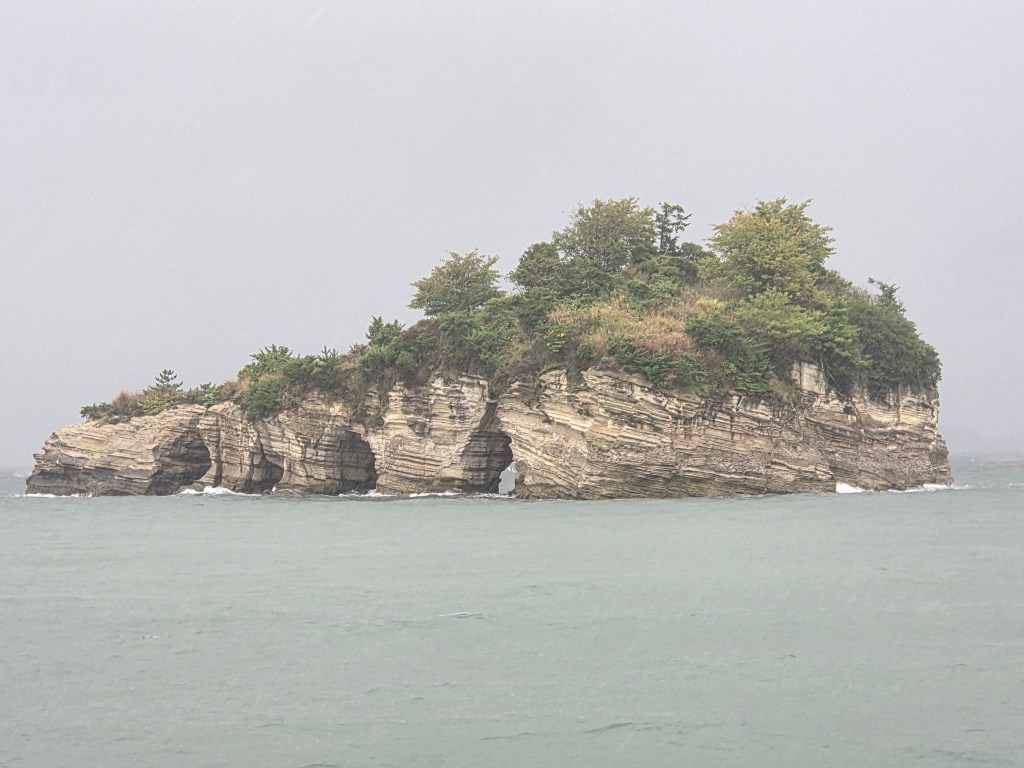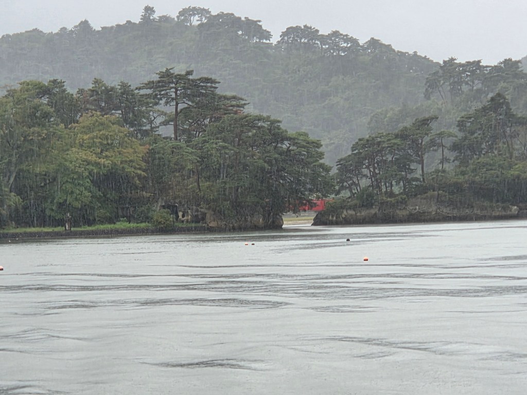 From there we walked over to Oshima Island, across another of the vermillion colored walking bridges. This is a sacred island that is the heart of Matsushima. The bridge to the island was destroyed in the 2011 tsunami, but rebuilt shortly after.
