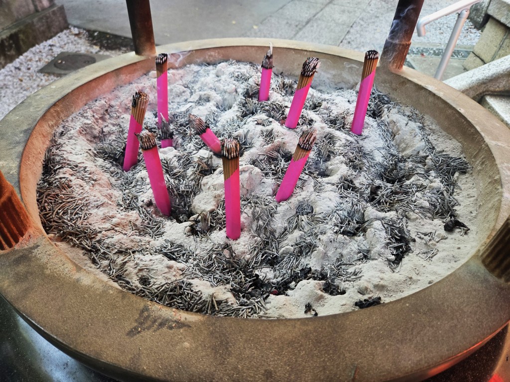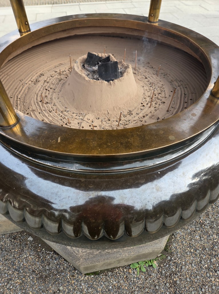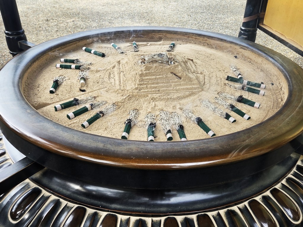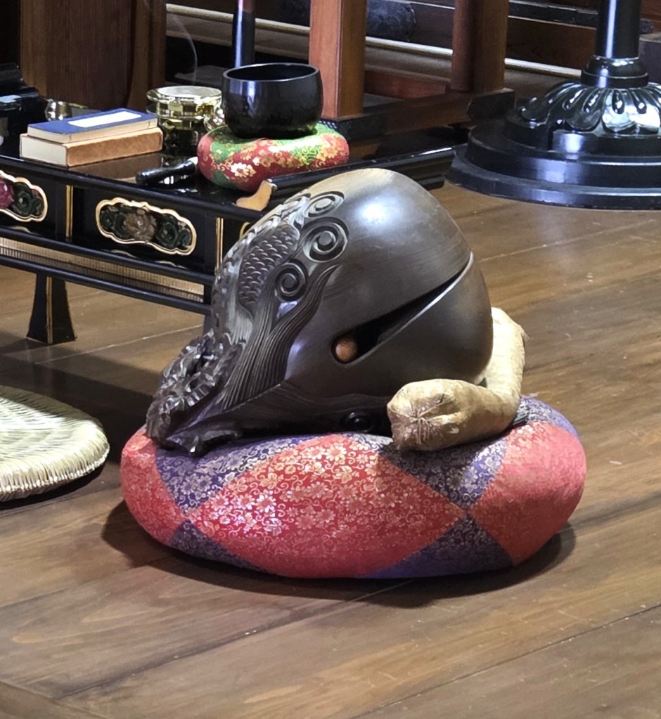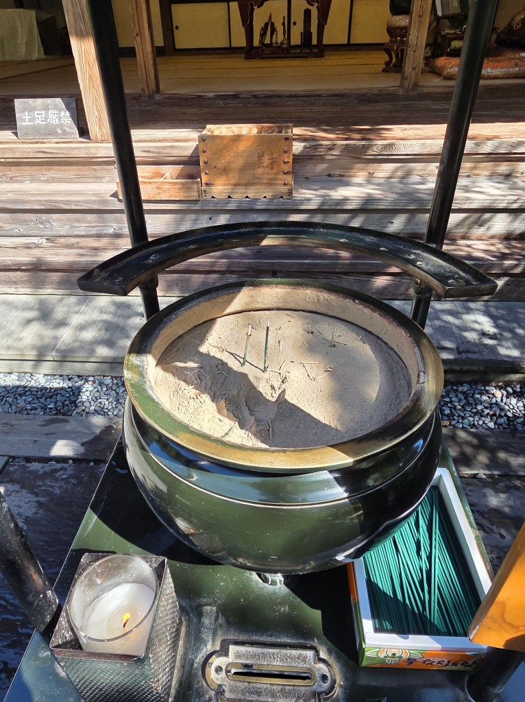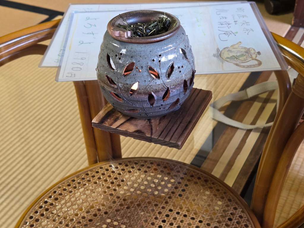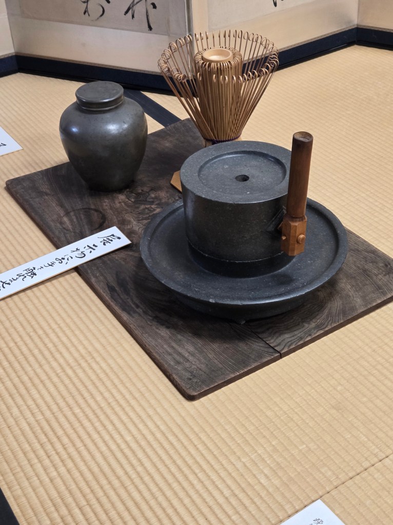 At the house Mariko showed me an old water pot set on top of a charcoal burner that her grandmother used when she performed tea ceremonies. Then a large calligraphy scroll that was made by her grandfather. A couple of meaningful family treasures.