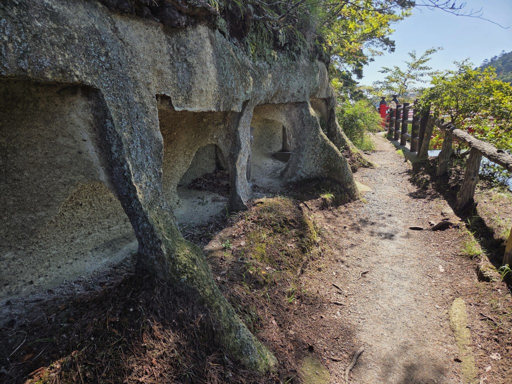 The small island contains many stone memorials and Buddha figures carved into the rock. Basho visited here as part of his travels.