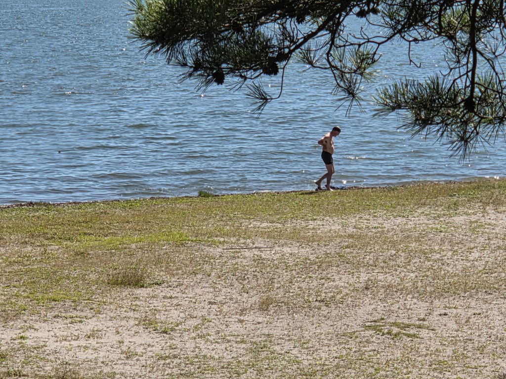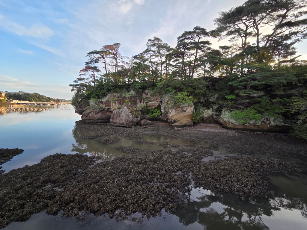 Just before walking across the bridge to the island there is a sand bar that Bart took notice of. Before leaving the area he went for a swim in the waters of Matsushima Bay!