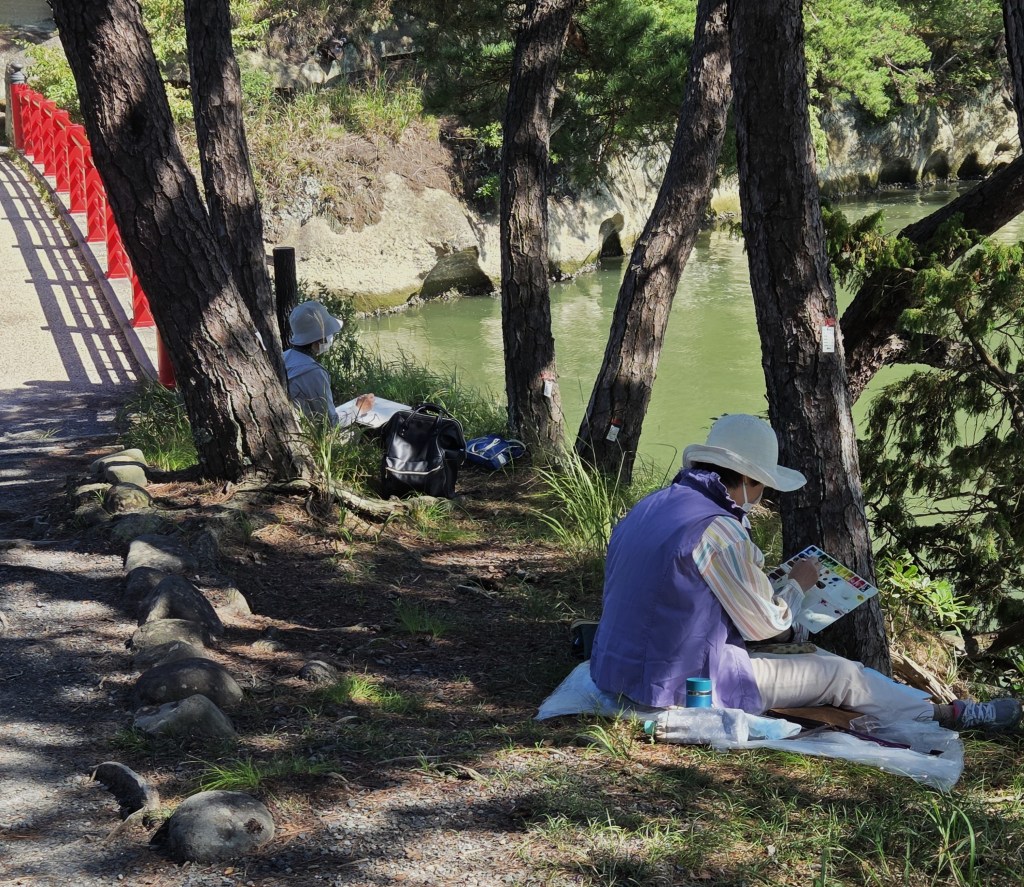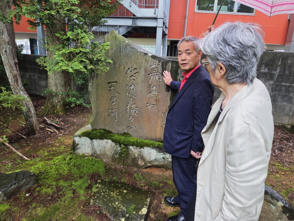At one point, a young woman stepped up to me as I was writing and asked where I was from. That then led into a pleasant conversation with her. She, Kiyo, lives in Niigata and speaks a bit of English. I read her my tanka that I had written earlier in the day. We were talking about Basho’s journey then Bart came by. She lives near Sado Island so Bart brought up Basho’s haiku about Sado. She knew the haiku and I asked her to read it, as Bart had brought it up on his phone. She did and then I asked her if she could do so again. This time she recited it by memory and I recorded it.