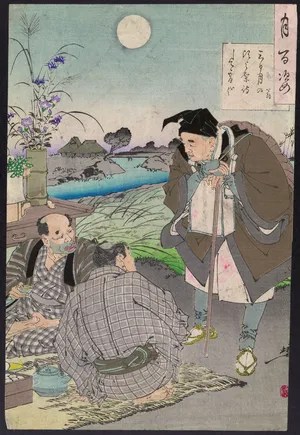 Bashō (standing), woodblock print by Tsukioka Yoshitoshi, late 19th century.