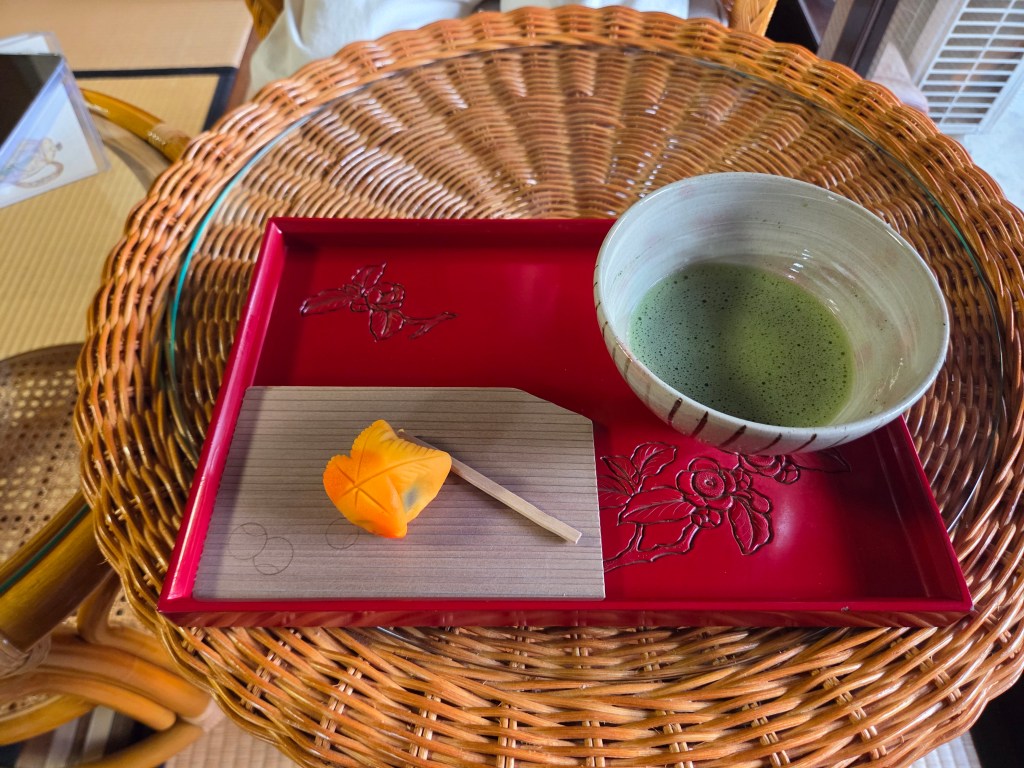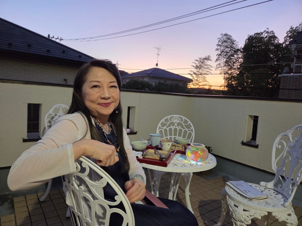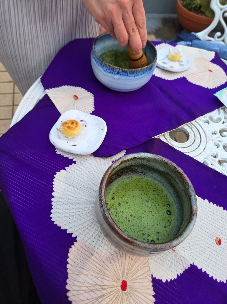 We had a small bite to eat (since we hadn’t had lunch) and a beer at a restaurant at Shibuya Station before heading back home. A little later Mariko whisked up a couple of cups of macha for us that we had on the patio as the day crept toward night.