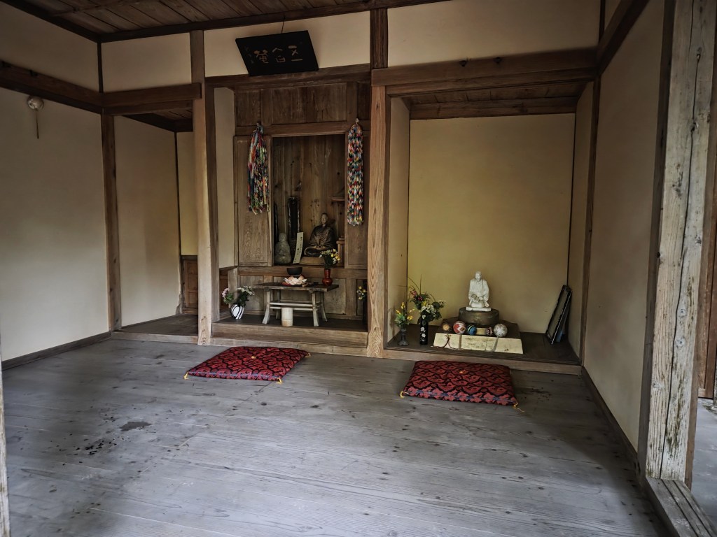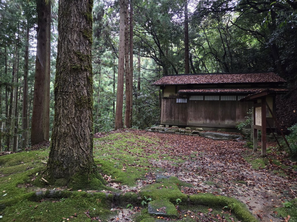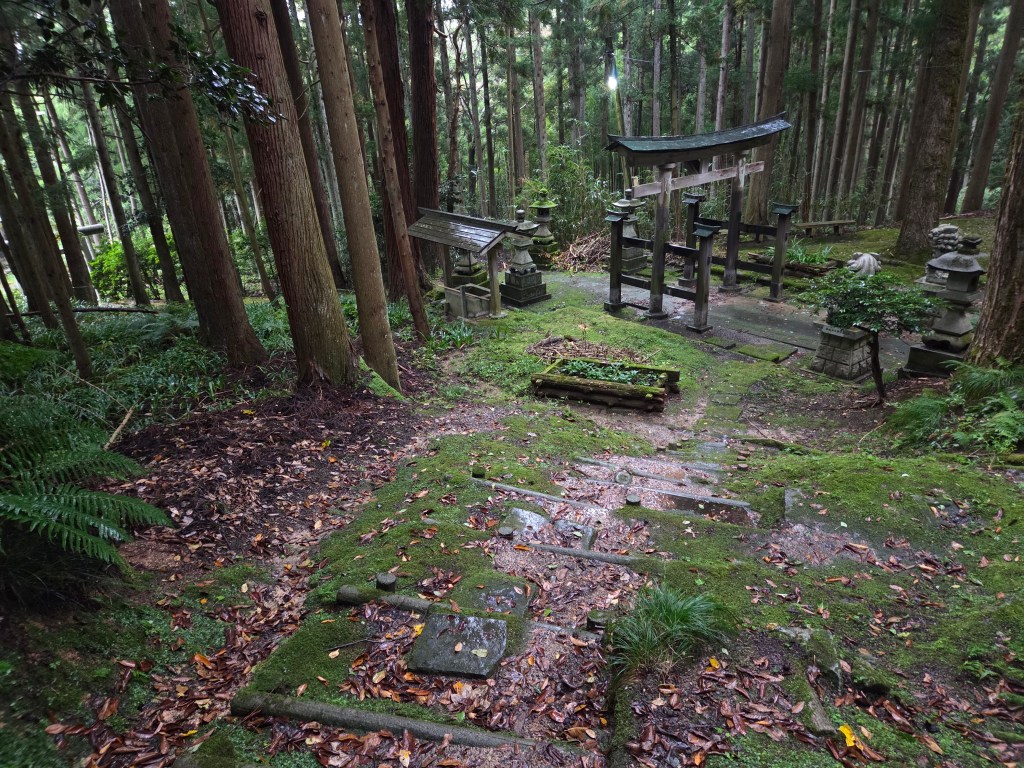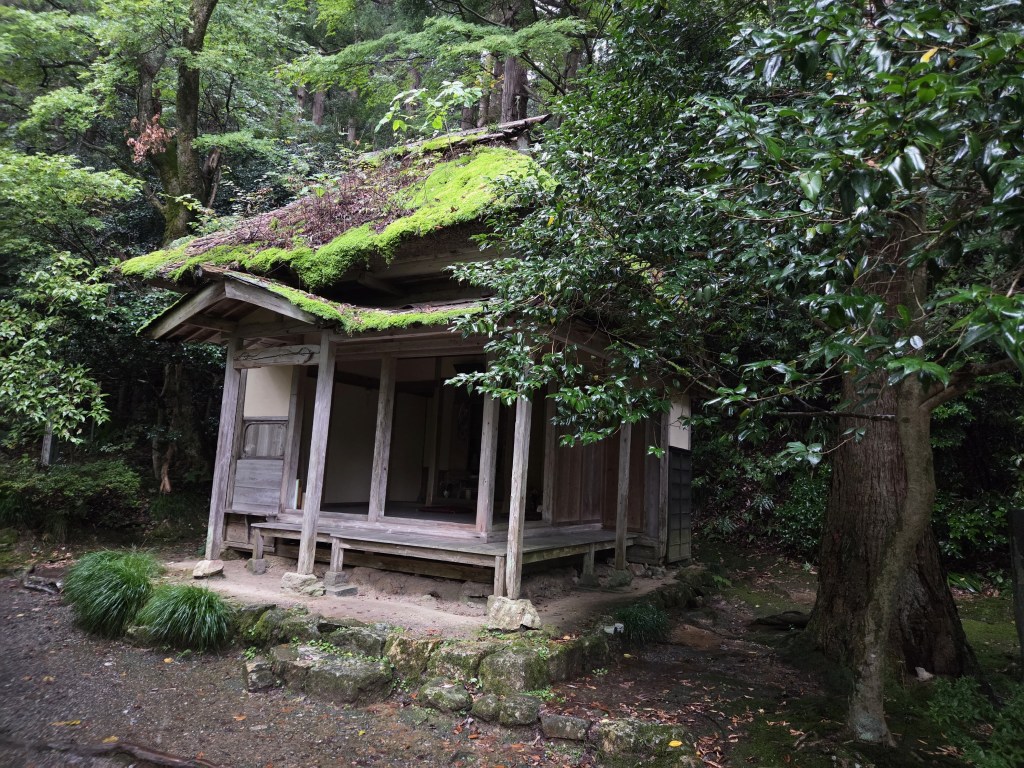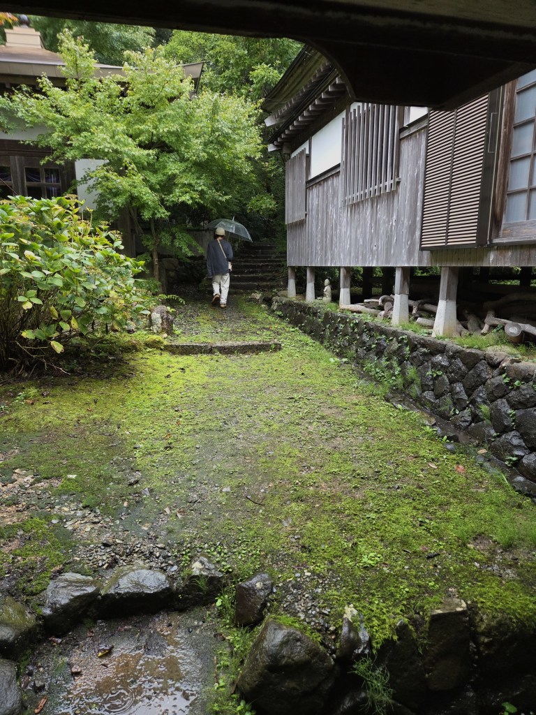 Kazuaki and I then drove to Mount Kugami where Ryokan lived. In a steady rain we walked on paths through the deep woods to the two rebuilt dwellings that he resided in. The first, and larger one, was the one he moved into after his other nearby place was difficult for him as his health deteriorated.