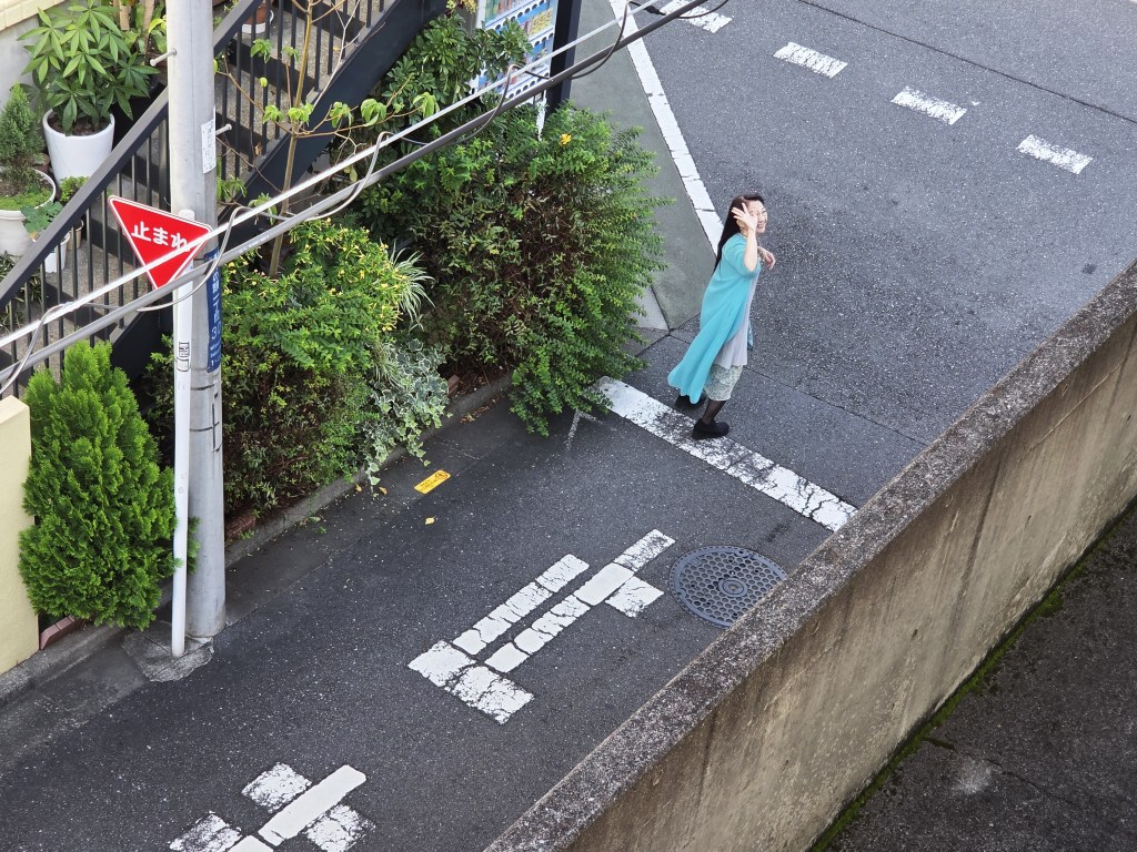 Before that, Mariko went out to a nearby store to get mushrooms for tomorrow’s breakfast. As she left I stepped to the edge of the patio and looked down to see her waving at me. This inspired the tanka I wrote: