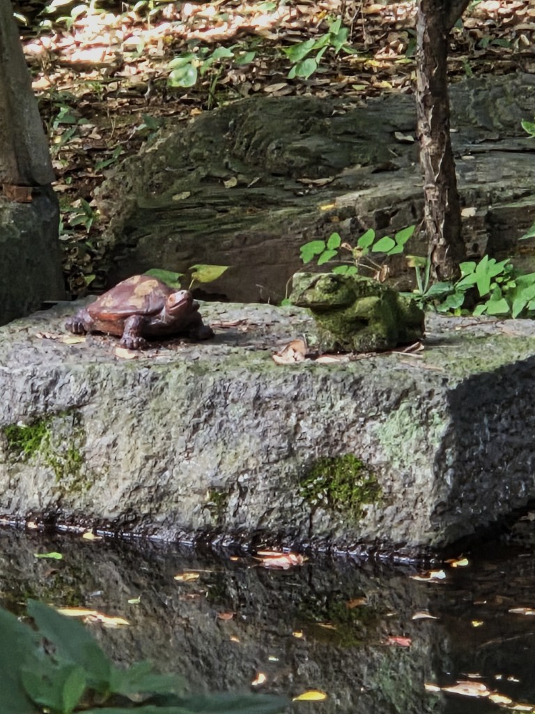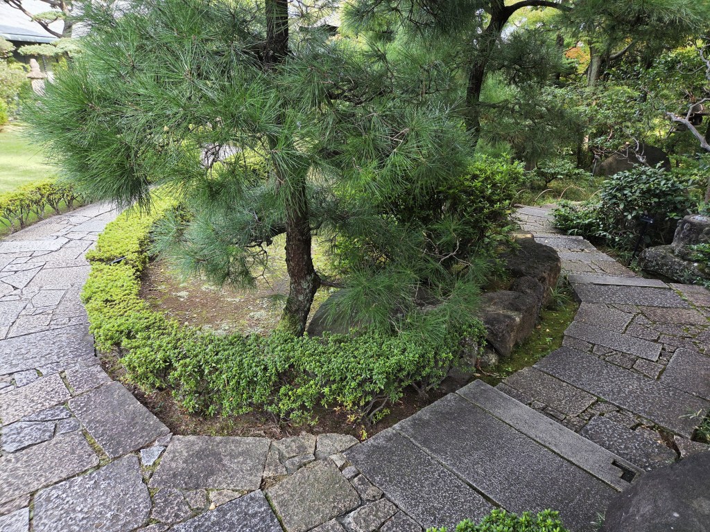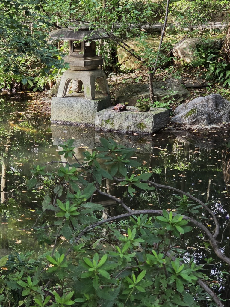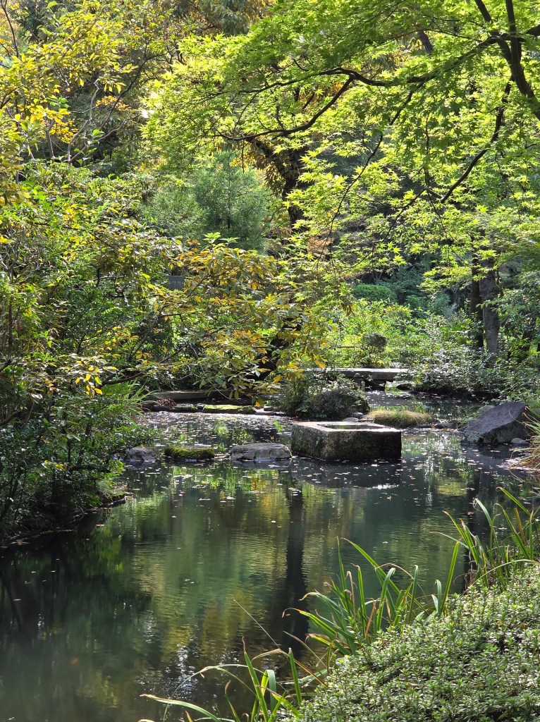 After viewing the exhibits we went outside to stroll through the garden of the museum. Paths wound along the little hillside and pond, underneath a canopy of trees. One large tree was a Ginko. I wondered what the age of this one was.