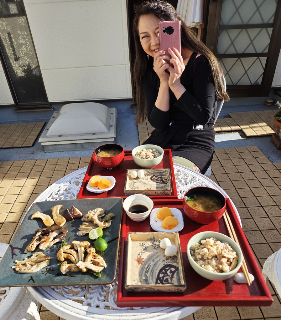A final morning in Japan. I’m out on Mariko’s patio. I’ve had my cup of tea and am working on my computer. The patio door opens and there is Mariko, saying good morning. We share a beginning of the day hug and she thanks me again for being here, then runs her fingers down her cheeks as if crying because I have to leave. We hug again and then discuss plans for the rest of the morning. She will be fixing a mushroom breakfast for me. I have mentioned, and she has seen my pictures of, mushrooms I’ve taken while on this journey. So yesterday, she made two trips to grocery stores to purchase a variety of mushrooms. I’m looking forward to what she will prepare.