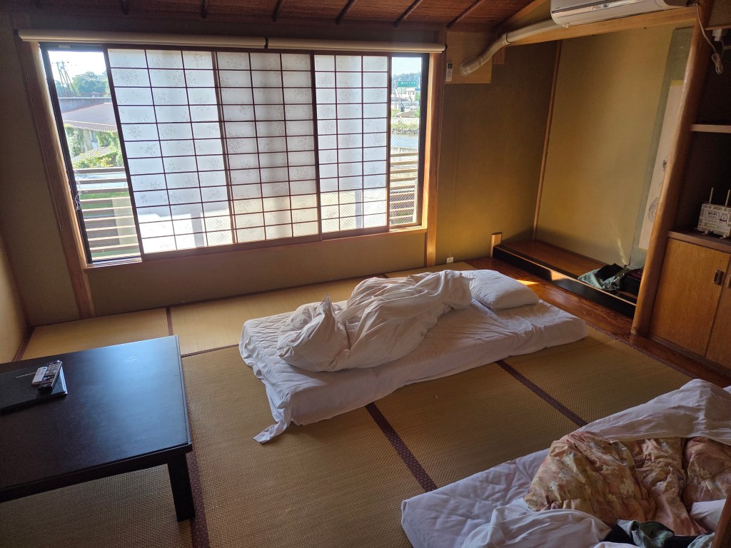A ryokan is a traditional Japanese inn. The floors are tatami and bedding is futons. This place, Matsushima Koumora, is run by an older couple that is third generation proprietors. A quiet, peaceful place, quite different than the hotel in Fukushima.
