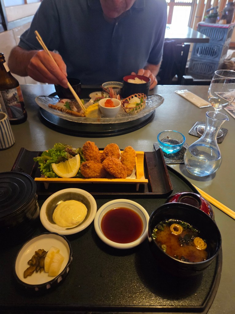 We made it to Matsushima after dark, took a taxi to the ryokan we are staying in and then went out to supper. Another wonderful meal.