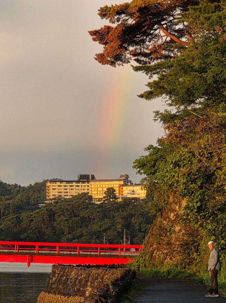 Afterwards we walked across one of the walking bridges to one of the over 200 islands in Matsushima Bay. The bridge is red and was lit up by lights. It was a delightful walk in the dark night and we can’t wait to explore the area in daylight over the next few days!
