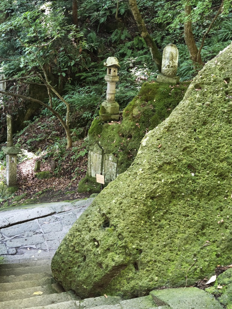 There are a number of Shinto Temples and Shrines located on Mt. Shinobu along with some overlooks. As we walked up, alternating between old stairways and paved road, we passed by, and stopped at, some of the Shinto structures. I thought that these were just historic buildings, which they are, but also, they are still being used. Along the way there were quite a few old stone monuments with words inscribed on them. Prayer stones, honorific stones, some ages old.